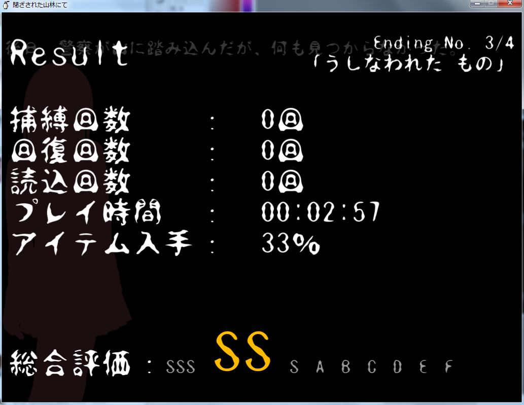 ここまでやってSSってことはアイテム入手33%が原因かしら。